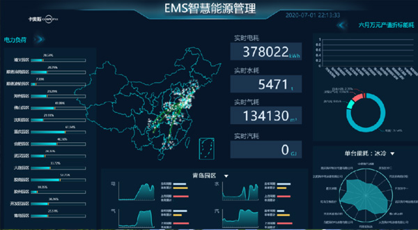 In the General Control Project of the Smart Energy of Haier Group, with the computer networking technology, real-time database technology, data analysis and forecasting technology, the centralized and flat dynamic monitoring and digital management will be carried out for the production, transportation, distribution and consumption of the enterprise energy mediums such as “electricity, water, compressed air, heat” and others and the status of power supply and power consumption equipment, and the energy balance is improved and optimized by the energy substation systems developed in 15 parks and 55 interconnected plants. The Project was awarded the UN “2019 MEWG”.
