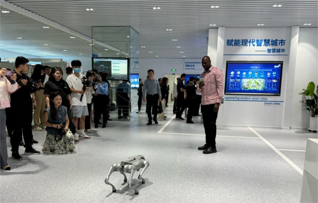 During the visit, the highly autonomous power inspection "robotic dog" from Dongfang Electronics attracted the attention of the diplomatic delegation. This four-legged power inspection robot, independently developed by Dongfang Electronics, demonstrated exceptional stability and intelligence by continuing to move steadily even when subjected to dragging, knocking, and other disturbances. Ambassador Ian J. Marshall from Grenada personally experienced the remote control operation of the "robotic dog" and expressed that it was his first time operating such a robot firsthand. He felt that it was easy to operate, responsive, and exhibited excellent execution and environmental adaptability. Ambassador Ian J. Marshall highly praised Dongfang Electronics' technological innovation and product strength, expressing anticipation for deeper exchanges and cooperation in relevant fields in the future.