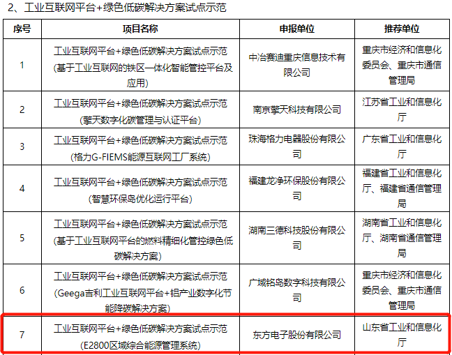 近日,工业和信息化部发布《关于公布2021年工业互联网试点示范项目名单的通知》,东方电子股份有限公司(以下简称“股份公司”)“E2800区域综合能源管理系统”成功入选2021年工业互联网试点示范项目名单-工业互联网平台+绿色低碳解决方案试点示范十大项目。股份公司按照集团公司在“工控、工业软件、工业IT、工业互联网”领域提升的战略,努力夯实基础,一步一步扎实推进工业互联网领域的产业提升。