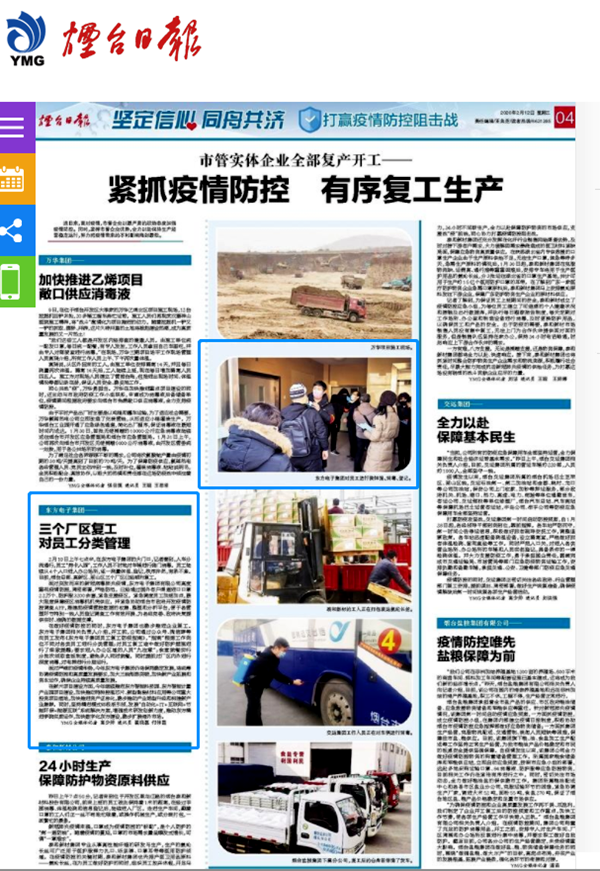 面对突发而来的新冠病毒肺炎疫情,东方电子集团有限公司高度重视疫情防控,周密部署,严格防范。已经通过国外客户渠道进口口罩2.2万个、防护服3200余套,紧急支援疫区。紧急调度员工加班加点,最大限度保障疫区消毒机机壳供应。并紧急协助烟台市政府开发疫情防控调查APP,搭建起疫情管控数据的收集、整理和分析平台,便于各管理环节特别一线人员登记调查工作有效开展,为各级党委、政府决策提供实时、准确的数据支撑。