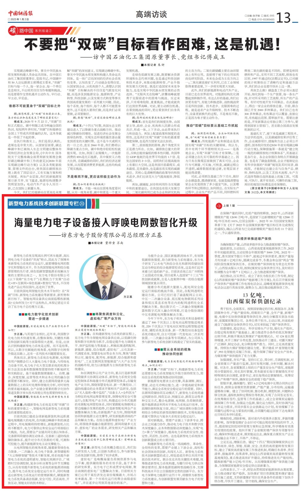 中国能源报:“双碳”目标下,智能电网设备供应商有何规划和布局?