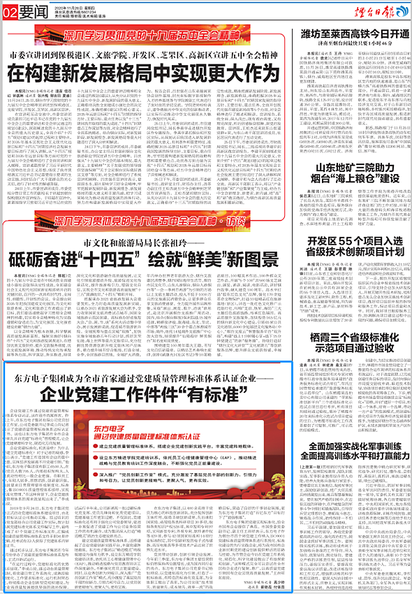 通过初步认证,东方电子集团在今年4月份举办了党建质量管理标准体系发布会,正式开始试运行。