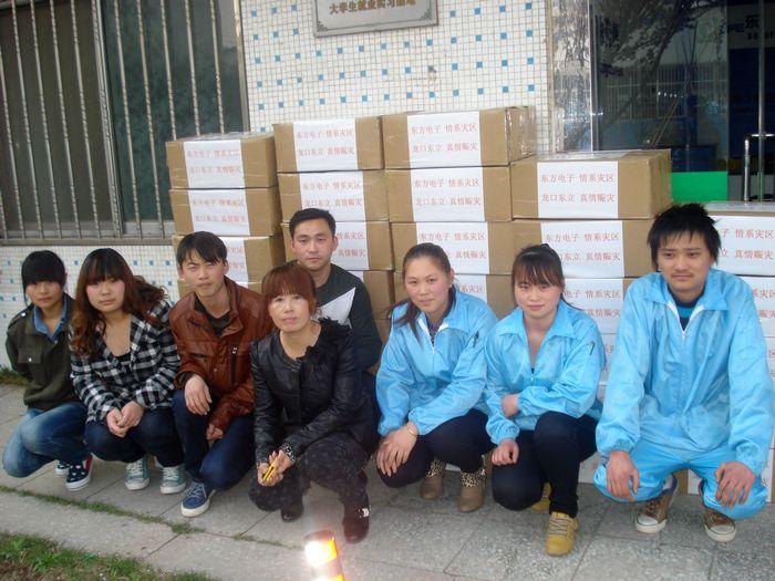 4月20日早8点,四川雅安发生7级地震,消息传来后,东方电子第一时间做出反应,公司旗下以生产线缆、灯具和汽车售后服务产品为主营的东立公司立即组织员工加班加点,赶制灾区可能急需的照明设备LED头灯和手电筒,用最快的速度发往灾区,无偿支援灾区救援工作。