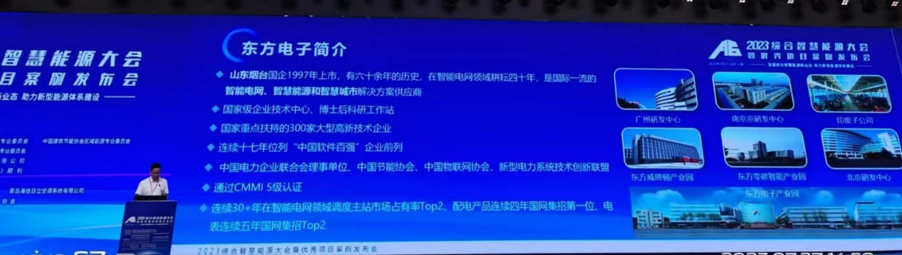 2023年7月27日,“2023综合智慧能源大会暨优秀项目案例发布会”在上海召开。东方电子股份有限公司作为战略协办单位出席此次大会。