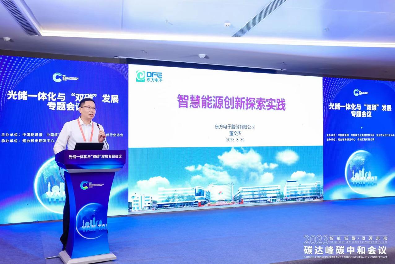 在光储一体化与“双碳”发展论坛上,东方电子综合能源业务负责人董文杰做了题为“智慧能源创新探索实践”的主旨报告,向与会领导和嘉宾介绍了东方电子在智慧能源领域做的创新和实践。