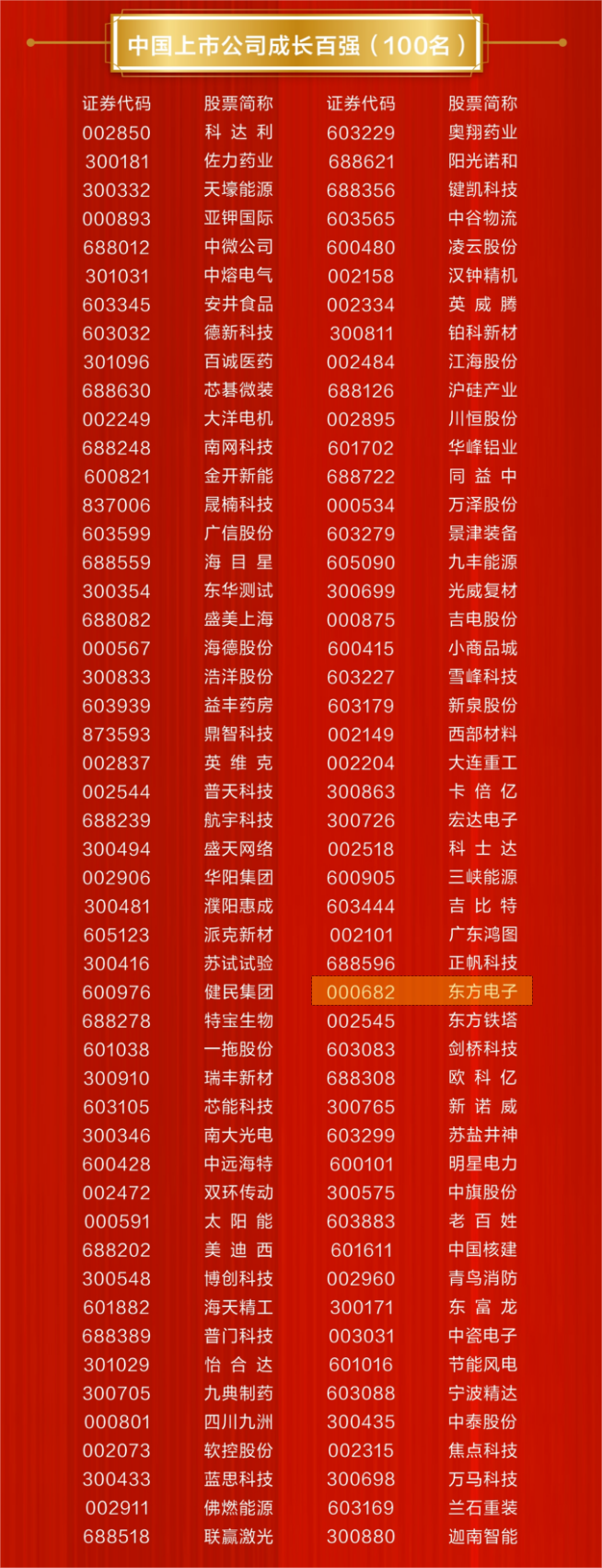 11月28日,在第17届中国上市公司价值评选活动中,东方电子股份有限公司(证券简称:东方电子,证券编码:000682)荣获“中国上市公司成长百强”奖项,该奖项是对公司多年来致力于创新推动发展所取得成就的充分肯定。